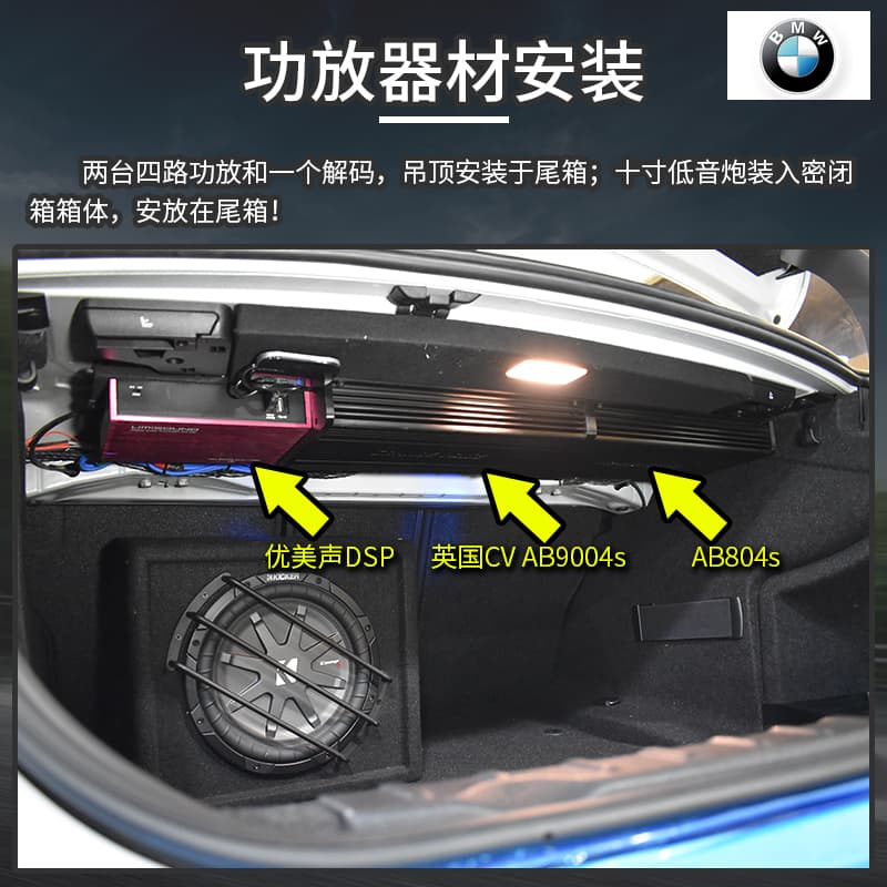 宝马335音响改装升级,配置为最常见的三分频主动分音系统,此套音响系统适合初次改装升级,且对音质有较高的车友选择!