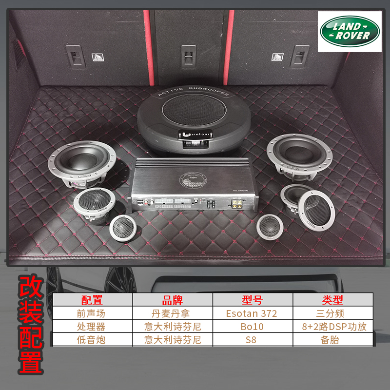 【路虎揽胜星脉】音响改装升级,入门三分频音响系统,丹拿三分频+诗芬尼10路DSP功放+备胎低音炮,惠州汽车音响改装